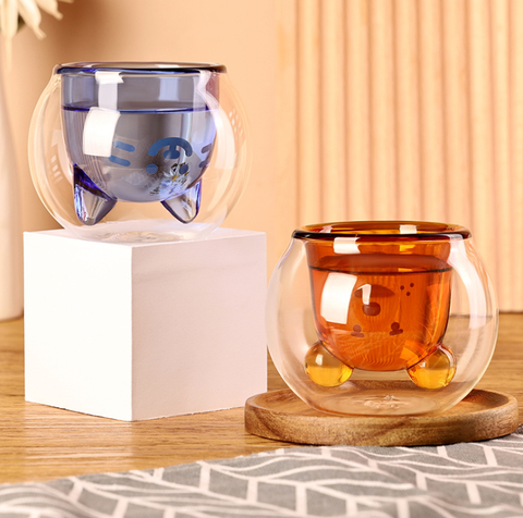 Mug Cangkir Kopi Kaca Dinding Ganda Borosilikat Tinggi Desain Kartun Beruang Lucu Warna Berbeda